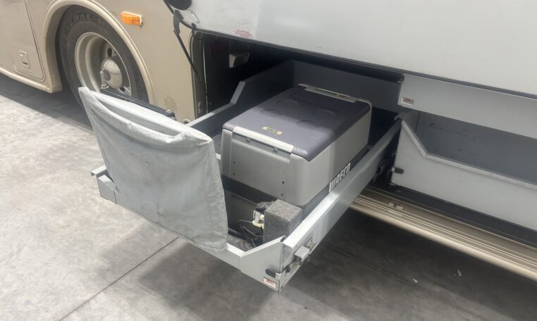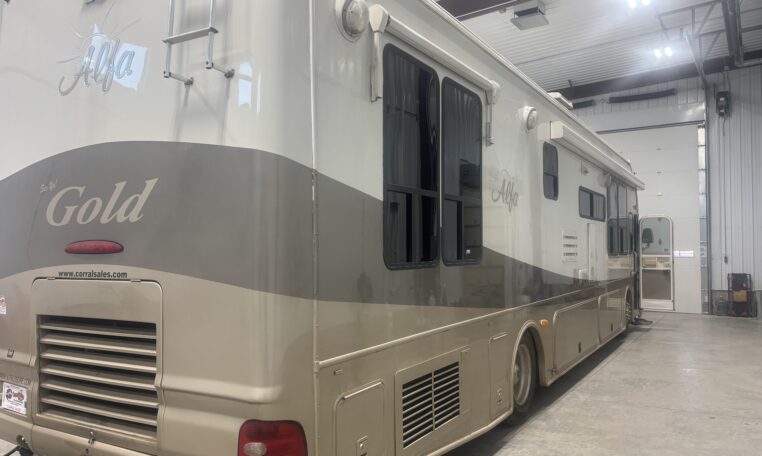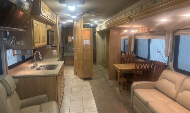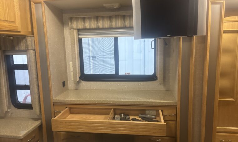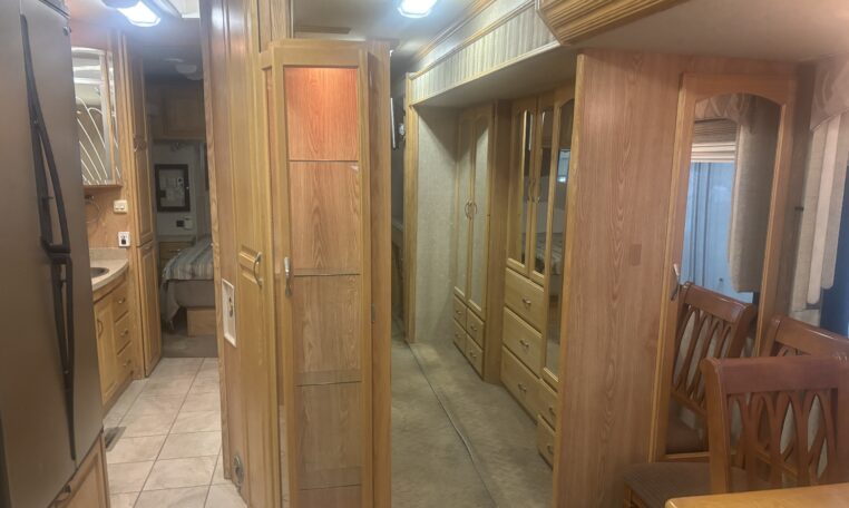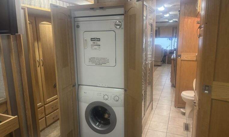Freightliner XC chassis, cummins ISL400 engine, 400 HP, 59,000 miles, Allison 3000MH 6 speed automatic, 7.5 KW diesel generator, Huge wardrobe, Auto leveling jacks, Washer/ Dryer/ exterior refrigerator and TV, slide out exterior storage bins, 150 gallon fuel capacity, 100 gallon fresh water capacity$53,800