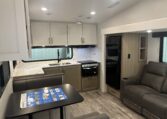 A small camper loaded with features, rear kitchen, theater seating and 12volt refrigerator in the main slide out, Jayco 2+3 warranty, easy towing only 7,690 lbs, 1,475 lbs hitch weight***Walk through video may not reflect actual unit and may not be the correct interior decor***
